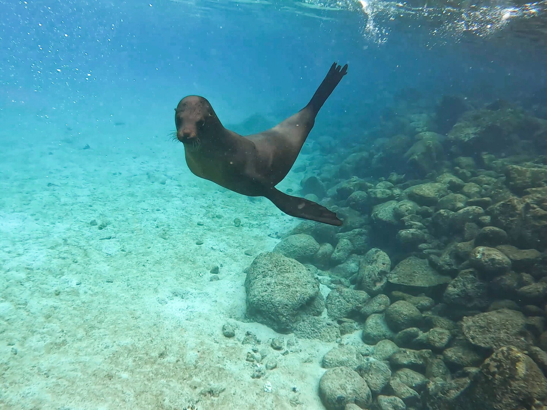 Celodenný výlet na ostrov, ktorý je známy jednou z najväčších kolónií uškatcov na Galapágoch. Už pri príchode bude jasné, kto je tu doma – desiatky až stovky uškatcov na pobreží aj vo vode. Počas výletu budeme mať možnosť ich pozorovať zblízka priamo v ich prirodzenom prostredí – či už z lode alebo pri šnorchlovaní. Stretnutia sú tu naozaj intenzívne a autentické. Okrem nich tu uvidíme aj ďalšie typické druhy Galapág – morské leguány, rôzne druhy vtáctva či kraby, všetko v prostredí, ktoré zostalo prakticky nedotknuté človekom.